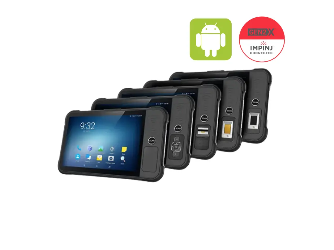 The latest P80 tablet runs on Android 13 and has a 8700 mAh battery. The 8-inch IPS display and multi-touch panel works with gloves and wet hands. It has a rugged design, with IP65 sealing and a 1.5m drop rating. The UHF engine is based on the Impinj E series, supports Gen2X, and it has a circularly polarized antenna with a 10m read range. Other data collection options include 2D barcodes, NFC and biometrics: facial recognition, and three options for fingerprint reading.