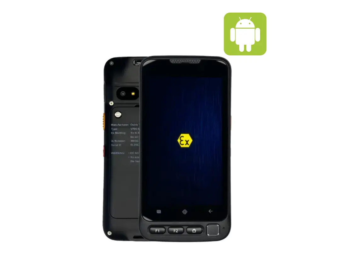 This handheld device is Zone 1 ATEX certified for gas, oil & mining. It is a rugged 2D smart scanner with Bluetooth & WiFi connectivity, powered by a 3000mAh battery. It has a fully encapsulated Type-C interface for charging and is IP67 & MIL-STD-810G rated. Comes with an optional pistol grip & charging cradle.