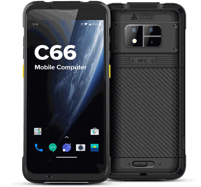 Highly expandable large-screen rugged handheld computer. Equipped with Qualcomm octa-core processor and Android 11/13, the C66 comes with a 5.5-inch HD display, barcode scanning, and NFC function. The device supports quick charge and UHF sled for high extensibility. It offers optional fingerprint recognition, volume measurement, built-in UHF function and with Wi-Fi 6-ready platform for higher data throughput and security that fully satisfy the needs in access control, logistics, manufacturing, retail and more.